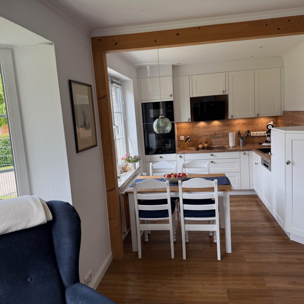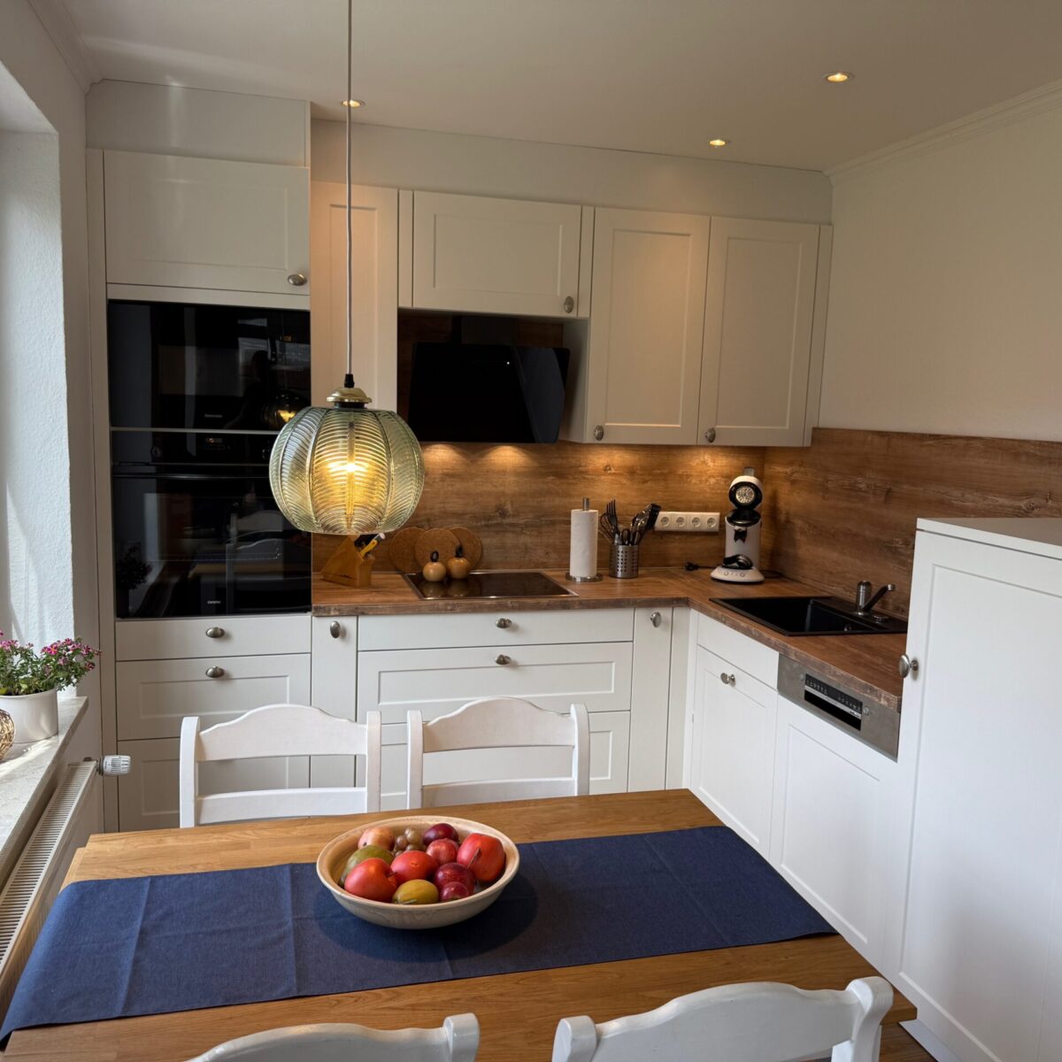 - Wohn-Esszimmer: Geschirrspüler, Kühlschrank mit 3-Sterne-Gefrierfach, Umluft-Backofen, 4-Platten-Cerankochfeld, Mikrowelle