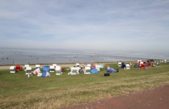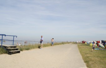 Der Badestrand direkt am Deich trägt ein grünes Kleid (Rasenstrand), geschmückt mit Strandkörben. Auch Hundefreunde finden hier einen Strandabschnitt! Vor Ort findet man von Fahrradverleih, Minigolfplatz, Kinderspielplätzen, Eisdielen, kleinen Stöber-Lädchen, Kur- und Thalassozentrum bis hin zur Gastronomie eigentlich alles, was man für einen gelungenen Urlaub noch so braucht.